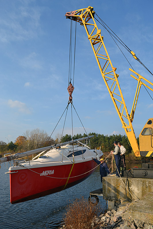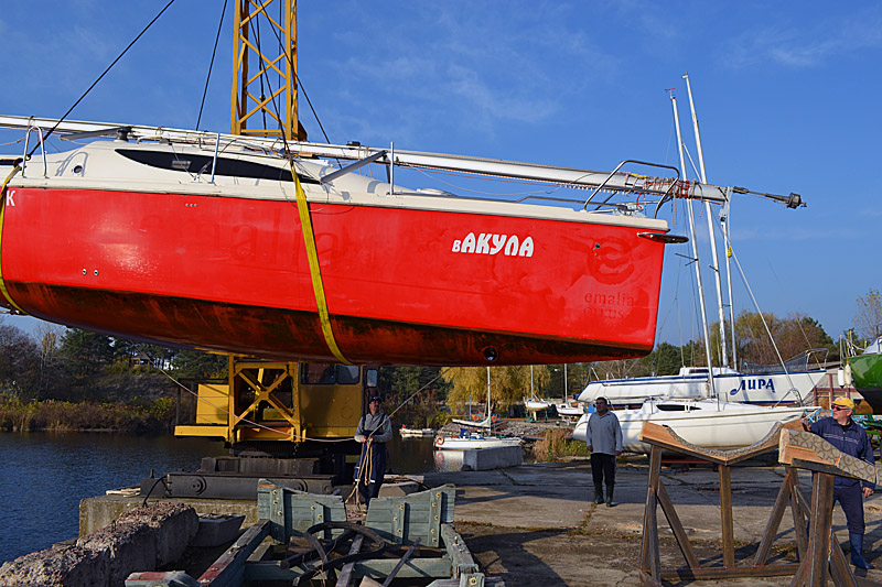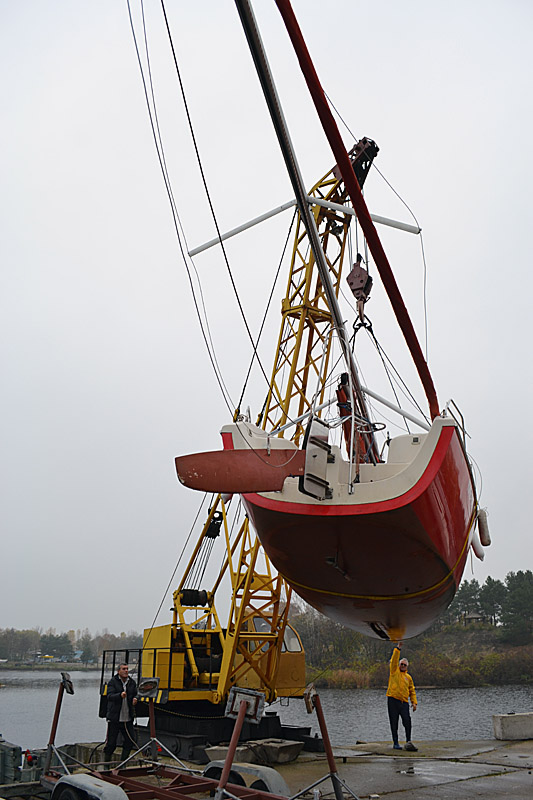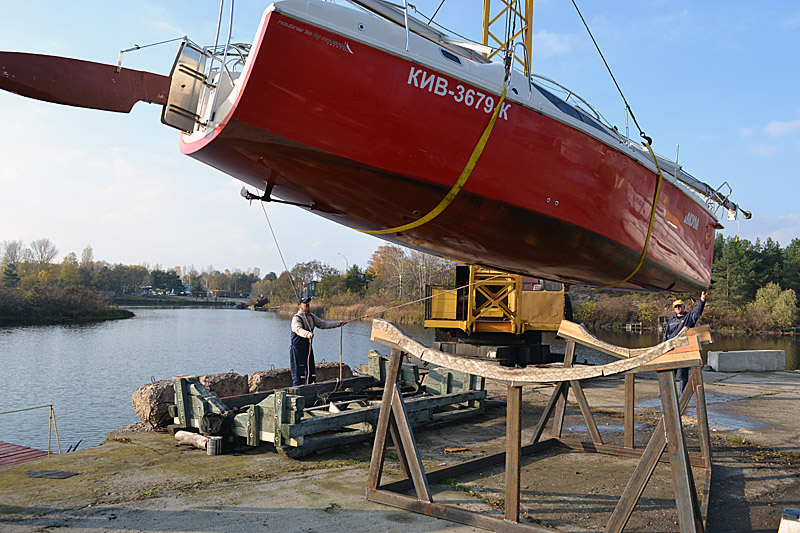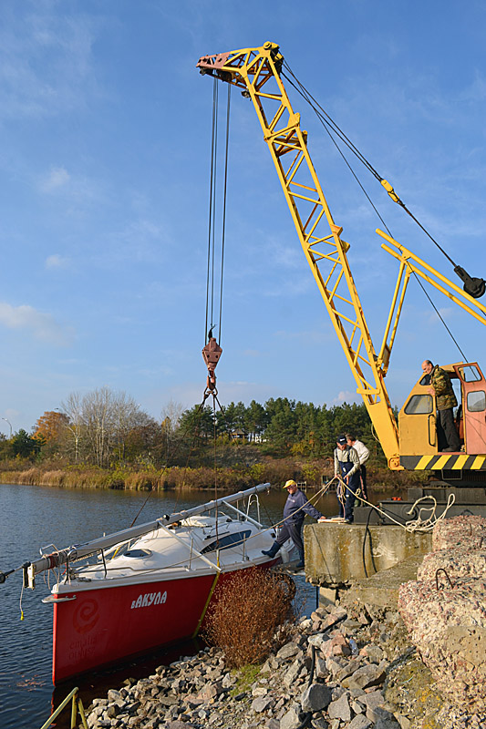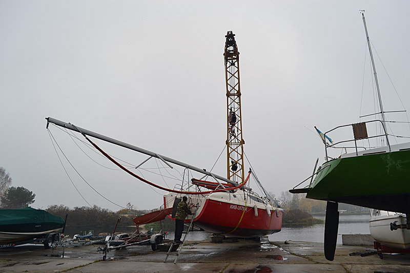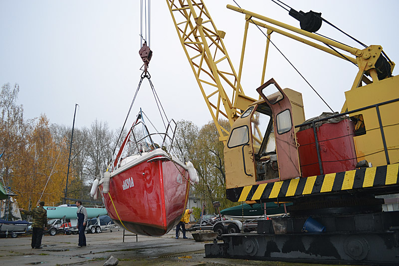 Фоторепортаж о подъеме яхты "Вакула" на кильблок на зиму 2015 / 2016 гг
