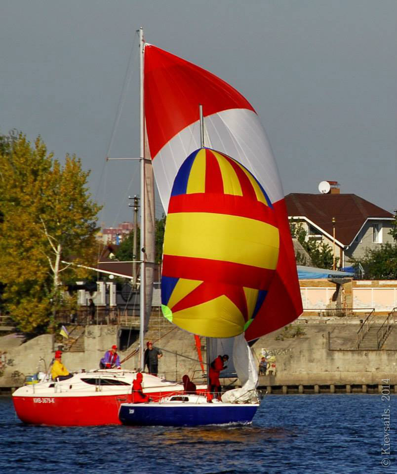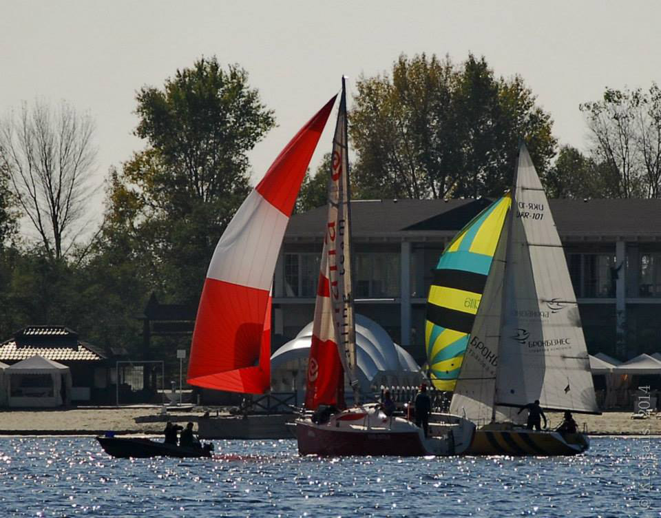 Наши фотокамеры, во-первых, во время гонок редко расчехляются, при этом нередко даже мешают (гонки всё-таки), а во вторых, даже будучи расчехленными - находятся вместе с нами исключительно на борту яхты. Поэтому обычно мы видим и снимаем только других - но не себя. На этот раз увидеть нашу яхту со стороны помогли коллеги - участники и просветители яхтенных регат, редактор "Київських вітрил" Любовь Котляр и основатель яхтенного интернет-магазина GoSailing.com.ua Евгений Протопопов, выложившие на своих фейсбучных страницах (соответственно www.facebook.com/kievsails и www.facebook.com/GoSailingUA) подробные фотоотчеты о регатах "Добрий спомин - 2014". Здесь мы приводим заимствованную у них подборку фотографий "Вакулы".