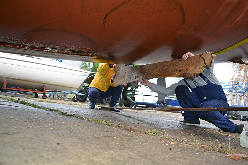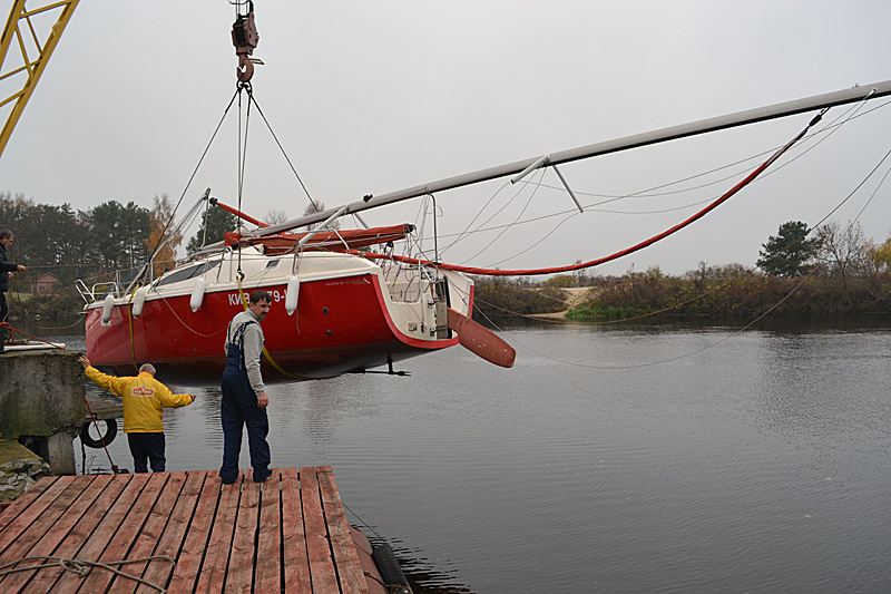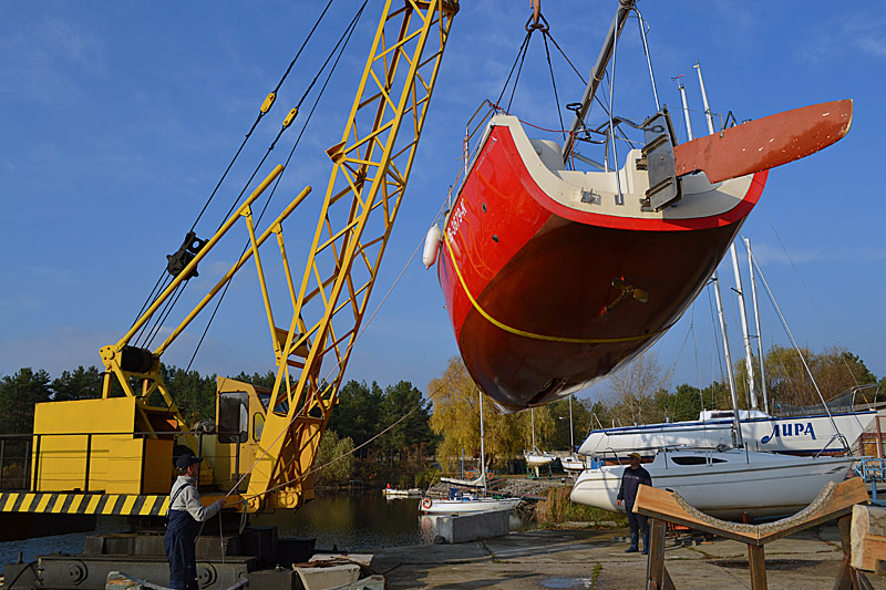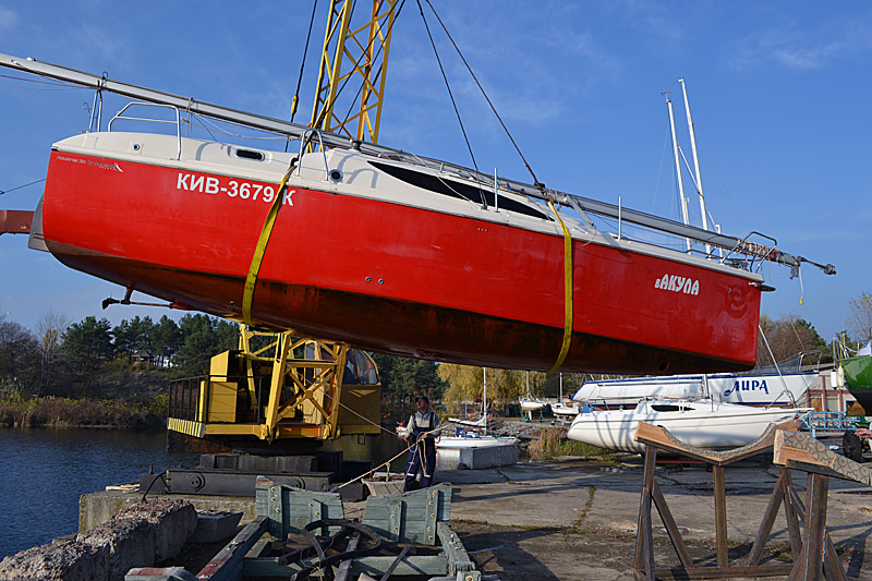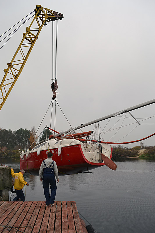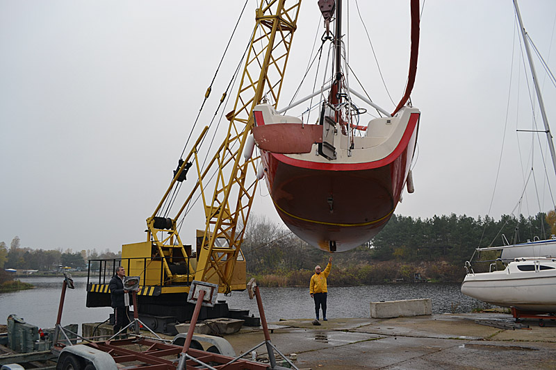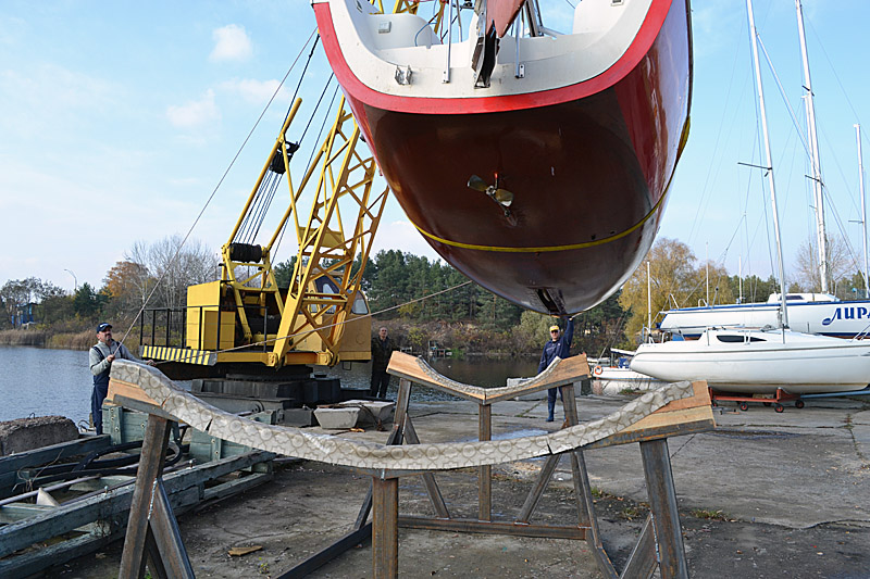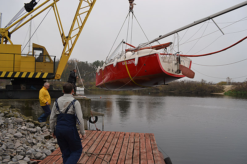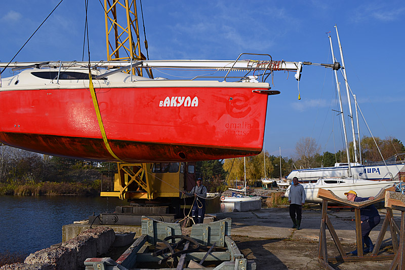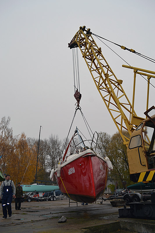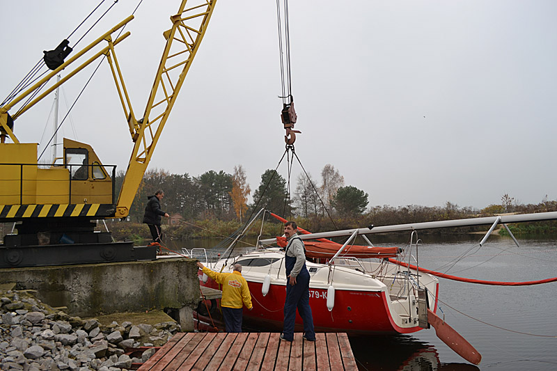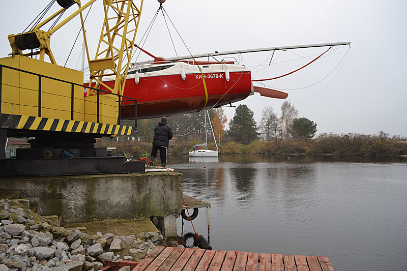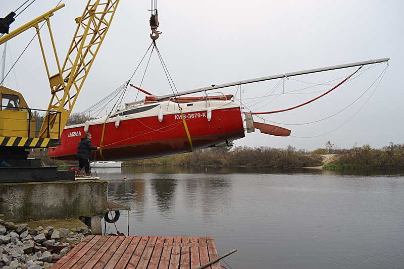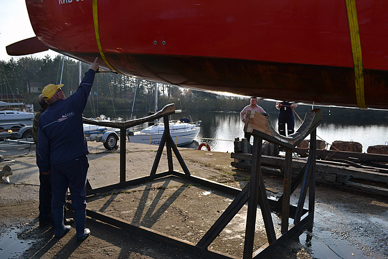 Фоторепортаж о подъеме яхты "Вакула" на кильблок на зиму 2015 / 2016 гг