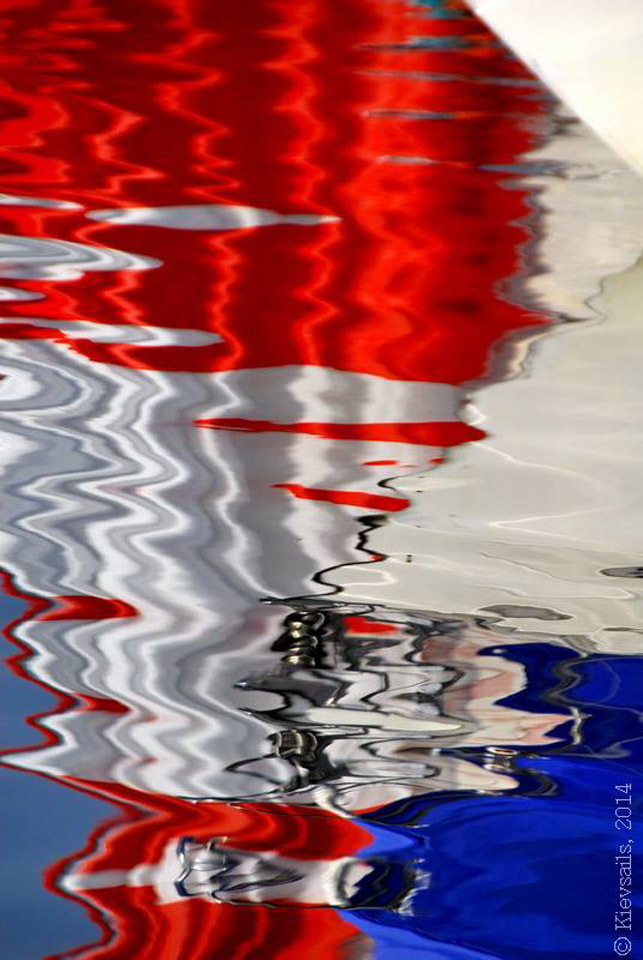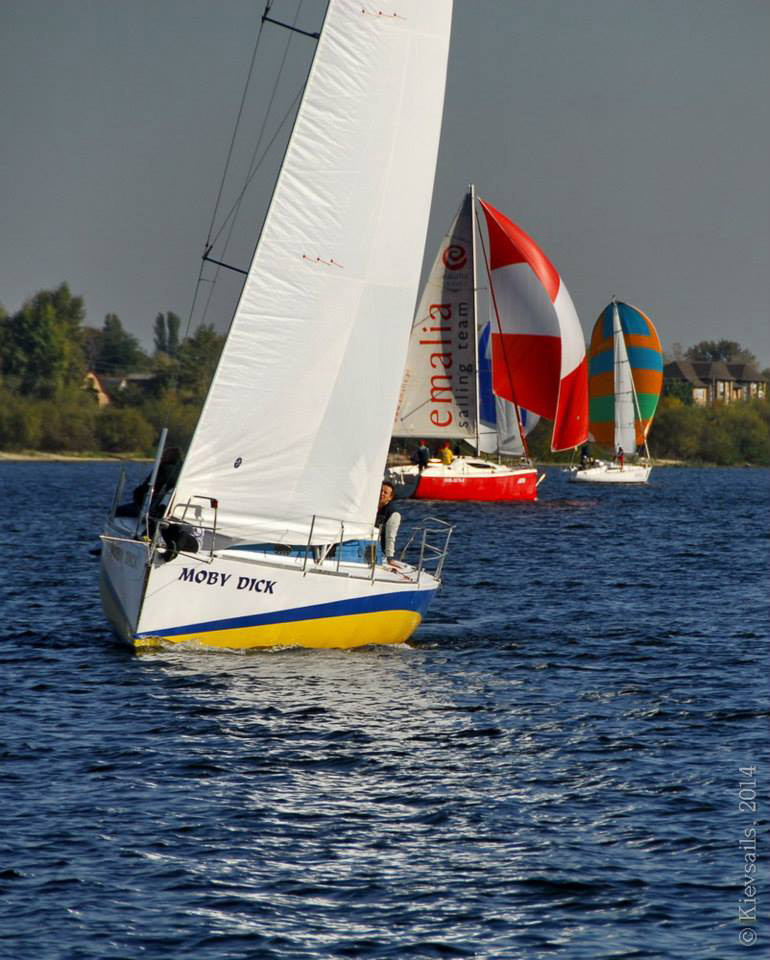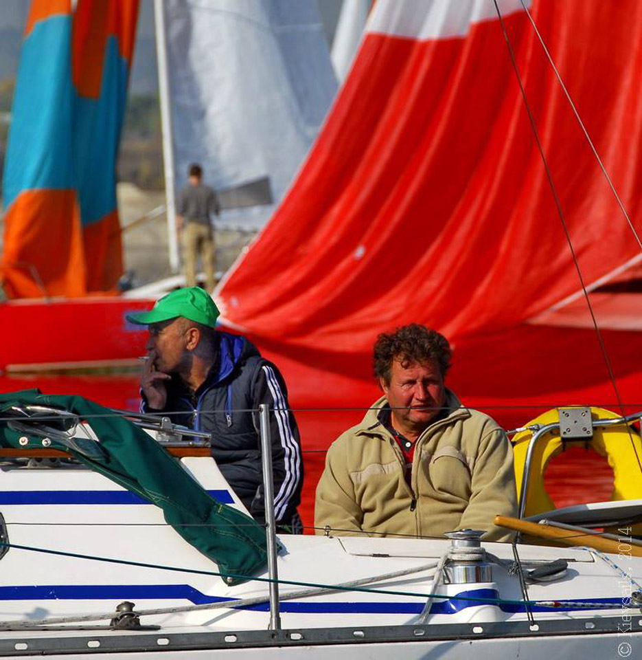Наши фотокамеры, во-первых, во время гонок редко расчехляются, при этом нередко даже мешают (гонки всё-таки), а во вторых, даже будучи расчехленными - находятся вместе с нами исключительно на борту яхты. Поэтому обычно мы видим и снимаем только других - но не себя. На этот раз увидеть нашу яхту со стороны помогли коллеги - участники и просветители яхтенных регат, редактор "Київських вітрил" Любовь Котляр и основатель яхтенного интернет-магазина GoSailing.com.ua Евгений Протопопов, выложившие на своих фейсбучных страницах (соответственно www.facebook.com/kievsails и www.facebook.com/GoSailingUA) подробные фотоотчеты о регатах "Добрий спомин - 2014". Здесь мы приводим заимствованную у них подборку фотографий "Вакулы".